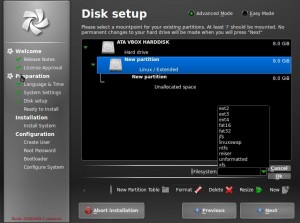 The only issue I had was trying to create a disk partition to install the OS to. This was because I was trying this out inside of VirtualBox, and the virtual hard disk did not have any partitions on it whatsoever. There is a bug and (thankfully) work-around for this known issue with their Tribe installer, and after reading a quick walk-through I was once again ready to install.