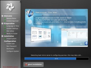 The Chakra Project looks very promising, albeit very unpolished at the moment. If they can manage to fix up the rest of the distribution, getting it just as polished feeling as the installer, this will definitely be one to look out for. I look forward to trying it out again once it hits a stable release.