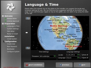 The install process even let me decide to install some very useful packages, like Microsoft Core TTF Fonts and Adobe Flash, right away. Even the Language & Time step was incredible, offering a rotating globe that I could drag around and manipulate.