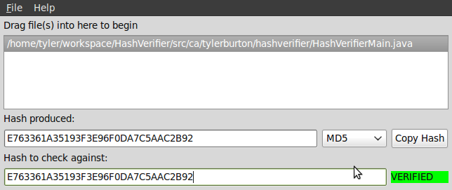 After reading up on how you can use SWT to give Java a more native look and feel I was interested in giving it a shot first hand. I decided to break out old faithful (Hash Verifier) and re-write it completely in Java/SWT. The end result was an application that has essentially equivalent functionality (see below for differences) but is completely cross-platform. No matter what operating system you end up running this on (Windows, Mac OSX, Linux) it should have a native look and feel. I will explain how I accomplished this literal “write once, run anywhere” code below.