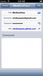 If you use KeePass on your desktop then this application is a must. MiniKeePass (currently free on the AppStore) lets you take your KeePass database of passwords with you on the go while still being protected by strong encryption – so even if your phone is stolen your passwords should still be safe. The interface is pleasant to use and lets you easily copy passwords for pasting into websites.