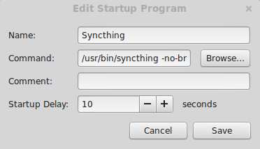So to set up syncthing to start automatically without the browser using the specified configuration you would simply add this to your list of startup applications: