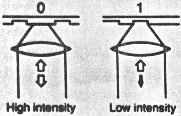 When the disc is later read back at a lower, normal, laser power a special property of magnetism slightly bends the laser light and causes it to reflect differently depending on the direction of the magnetic pole. This can be detected and translated back into 1s and 0s just like pits and lands.